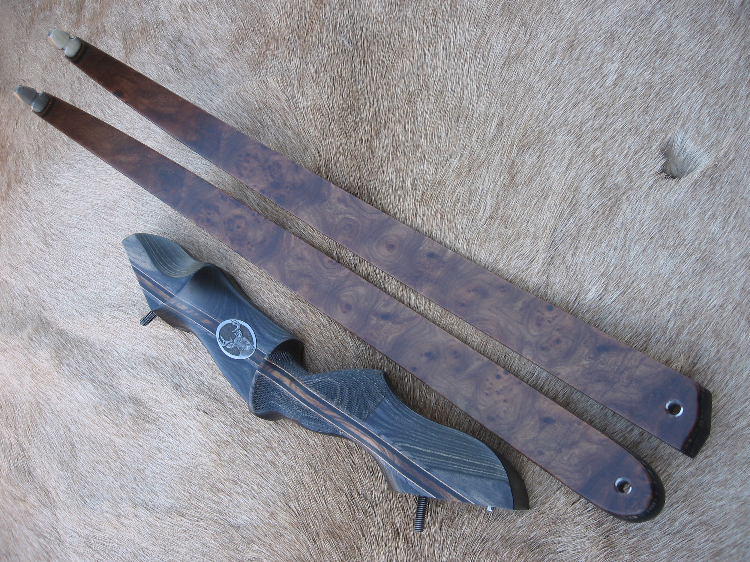 The standard limb comes with either black or clear glass. The standard clear glass option would include the Actionwood core stained to match the riser of your choice. Black glass would be solid black with no core wood showing through. The standard tip overlay is wood with additional options of antler and various horn.